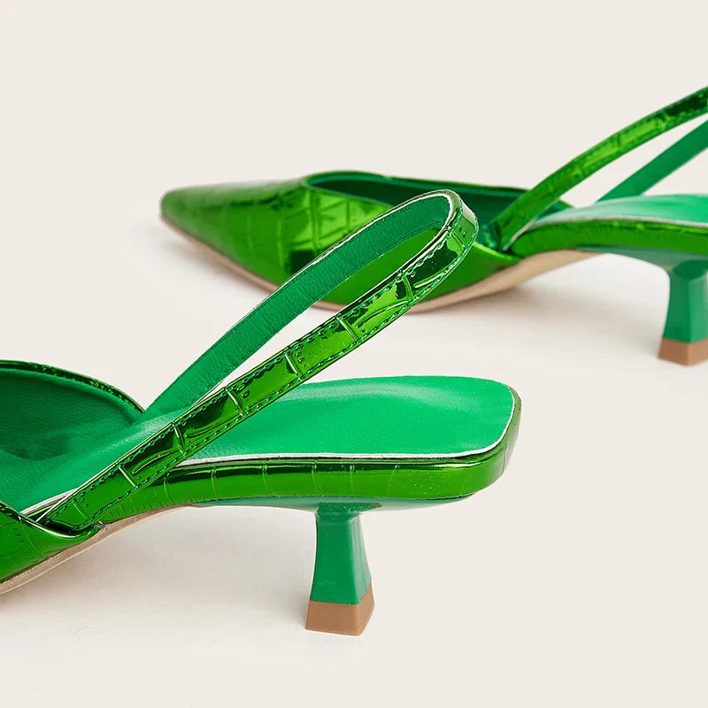 Summer New Fashion Back Strap Stone Pattern Purple Pointed Toe Slingback Shoes Brand Wedding High Mules Low Heel Pumps