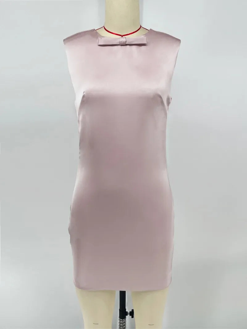 Set the tone for a playful and flirty night with our Alivia Backless Bow Tie Satin Mini Dress. This dress boasts a sexy backless design and a charming bow tie detail. ready for cocktail party and any fancy event making you the center of attention. Spice up your wardrobe with this unique piece. Removable bow ribbon.