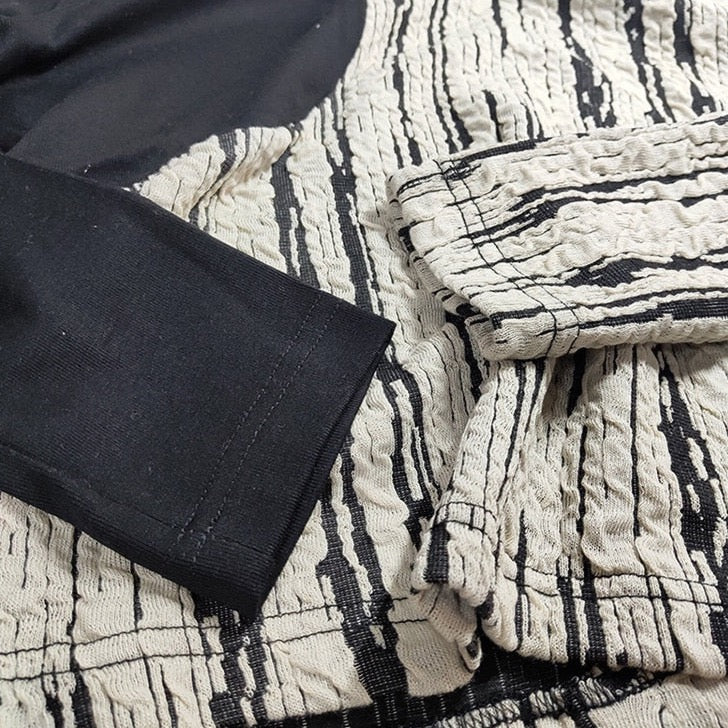 Put your fashion sense into sculptural territory with our Arno Cut-Out Art Prints Tops! This one-of-a-kind garment allows you to make an artistic statement with your own chic style. With its intricate cut-outs. brush stroke stripes in textured fabric add oriental art scene. you can be sure to make a statement whenever you wear this unique top! Get creative and dazzle up your wardrobe today!