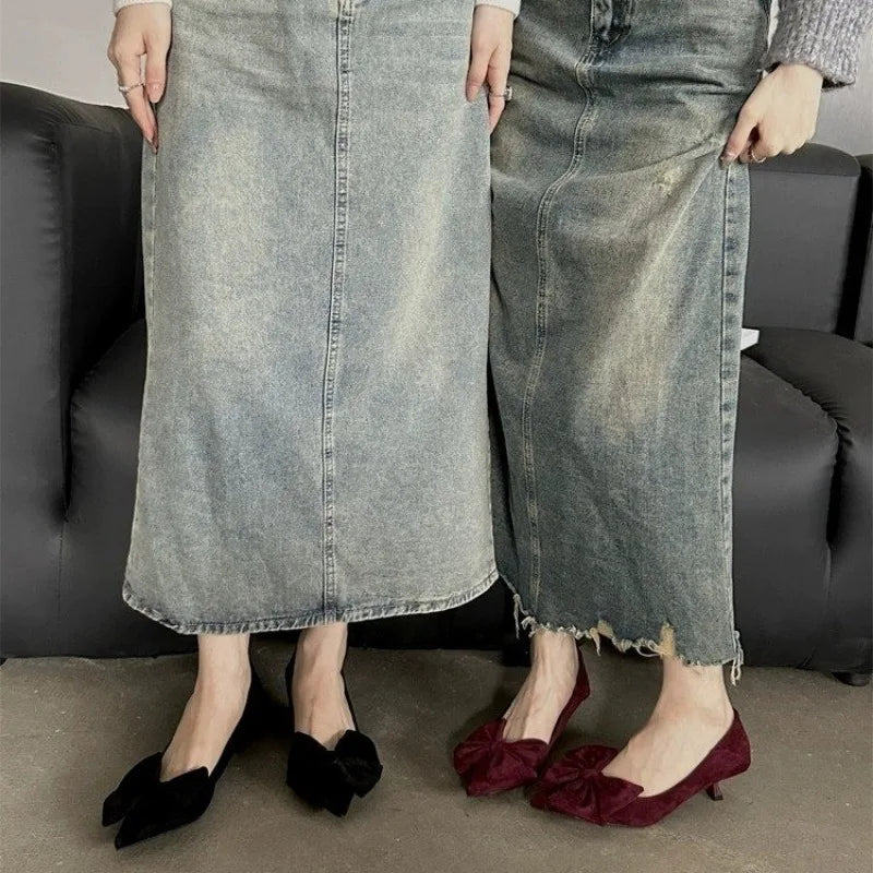 Autumn Elegant Butterfly Knot Stylish Pointed Toe Stiletto Low Heel Pumps