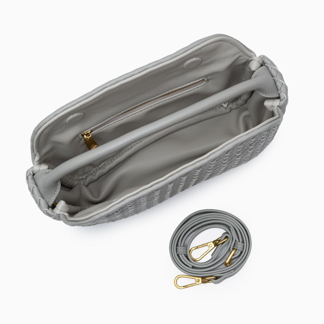 This high-end woven bag boasts a unique shape. making it a standout piece for any wardrobe. Its comfortable handle and secure magnetic clasp combine style with practicality. while the luscious interior ensures your essentials are beautifully stored. Chic and timeless. the Ava Handbag elevates your everyday look with its gorgeous design and high-quality craftsmanship. Now available in dark brown. black. green. and gray.