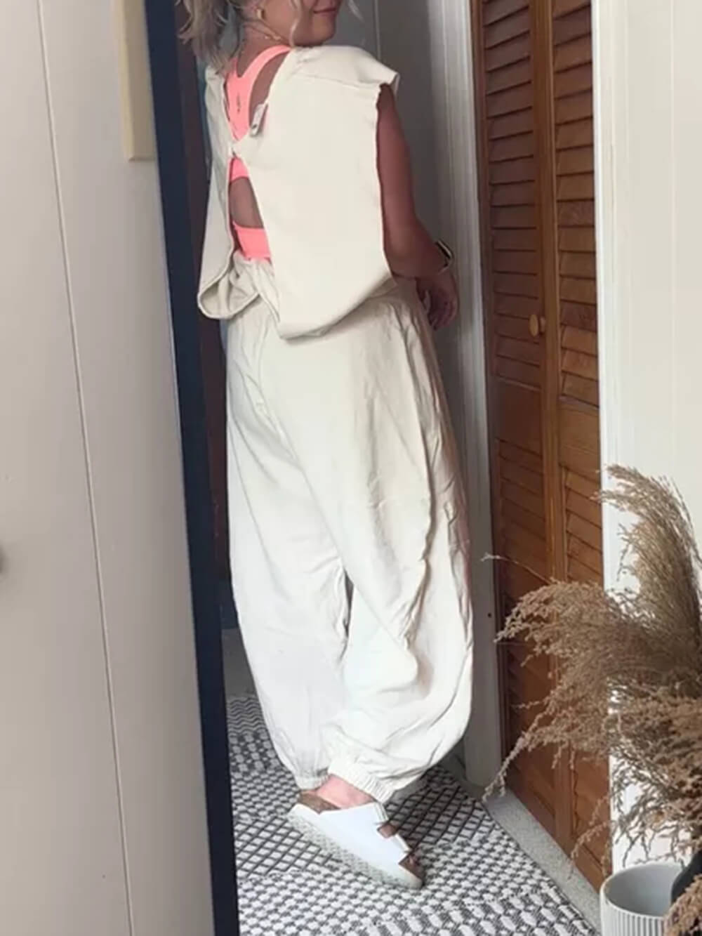 But what truly sets this jumpsuit apart is its captivating backless design with a corset-style lace-up detail. It's a tasteful revelation of your daring side. leaving an indelible impression.