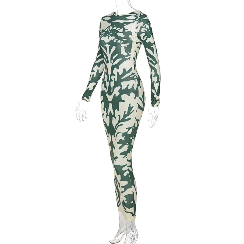 Backless High Waist Fashion Long Sleeve Midi Dress