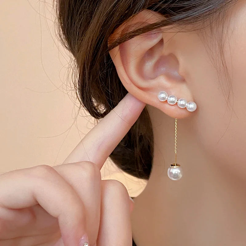 Treat yourself to a look that's twice as nice with these Bar and Pearl Pendant Drop Earrings! Featuring a pearl embellished bar front with a pretty pearl dangling from the center. these earrings will add a bit of class to any ensemble. Get ready to make a statement!