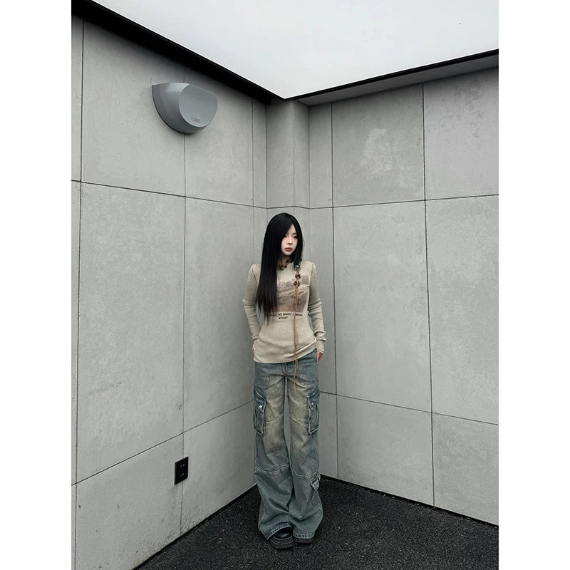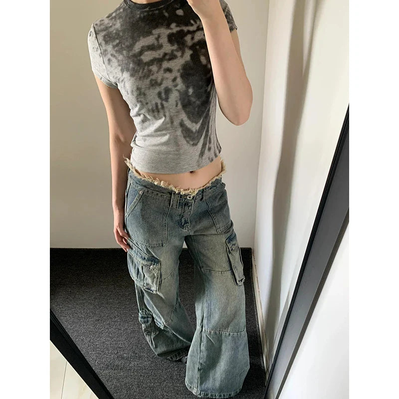 Blue Cargo Harajuku Denim Aesthetic Oversize Vintage Trashy Jeans