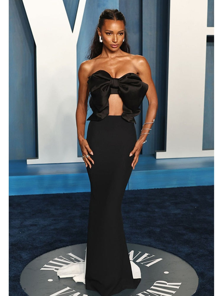 Bodycon Dress Elegant Black White Strapless Skiny Long Dress