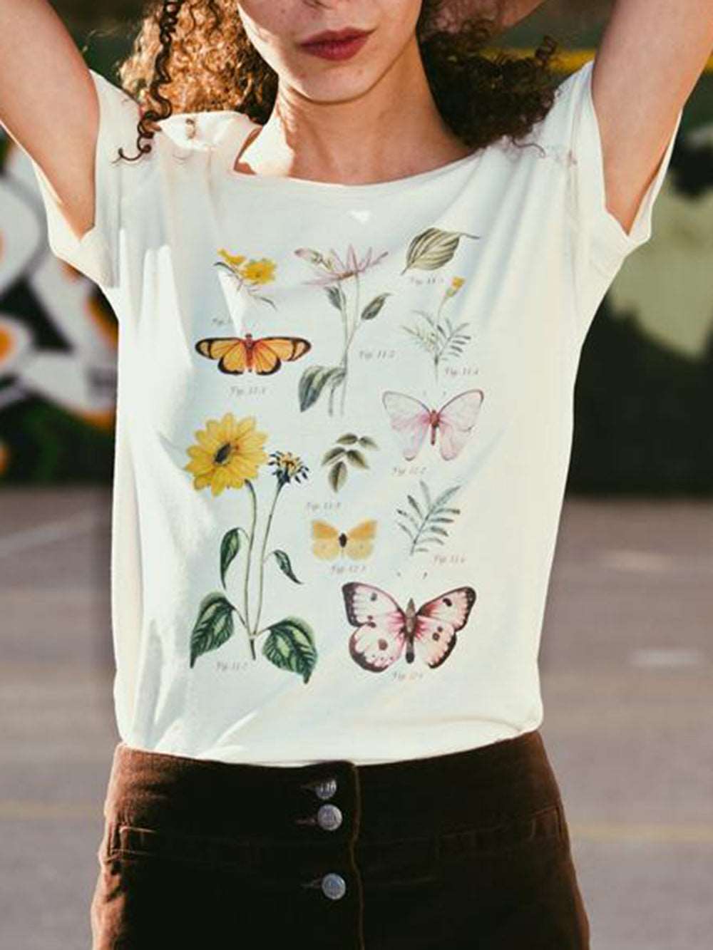 Our exclusive Butterfly Boheme design is printed on a 100% cotton soft white tee and is for lovers of all things nature and vintage.