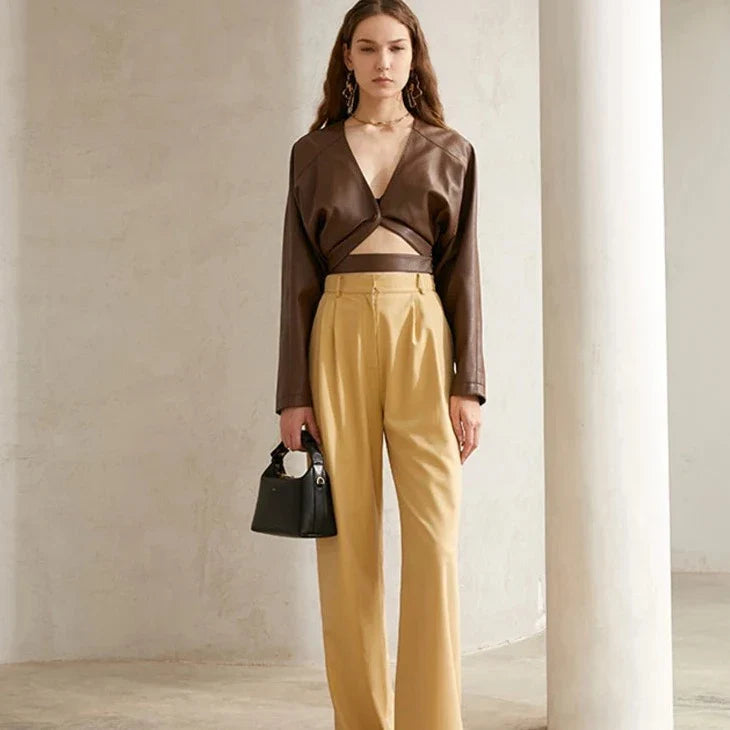 Unleash your inner ballerina with the Cambri Faux Leather Ballerina Bolero Top! Made with soft faux leather. this cut out bolero top/jaclet adds a touch of edginess to any outfit. Perfect for a night out or a casual day. this top will have you feeling confident and stylish.