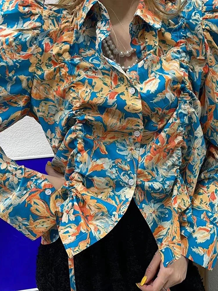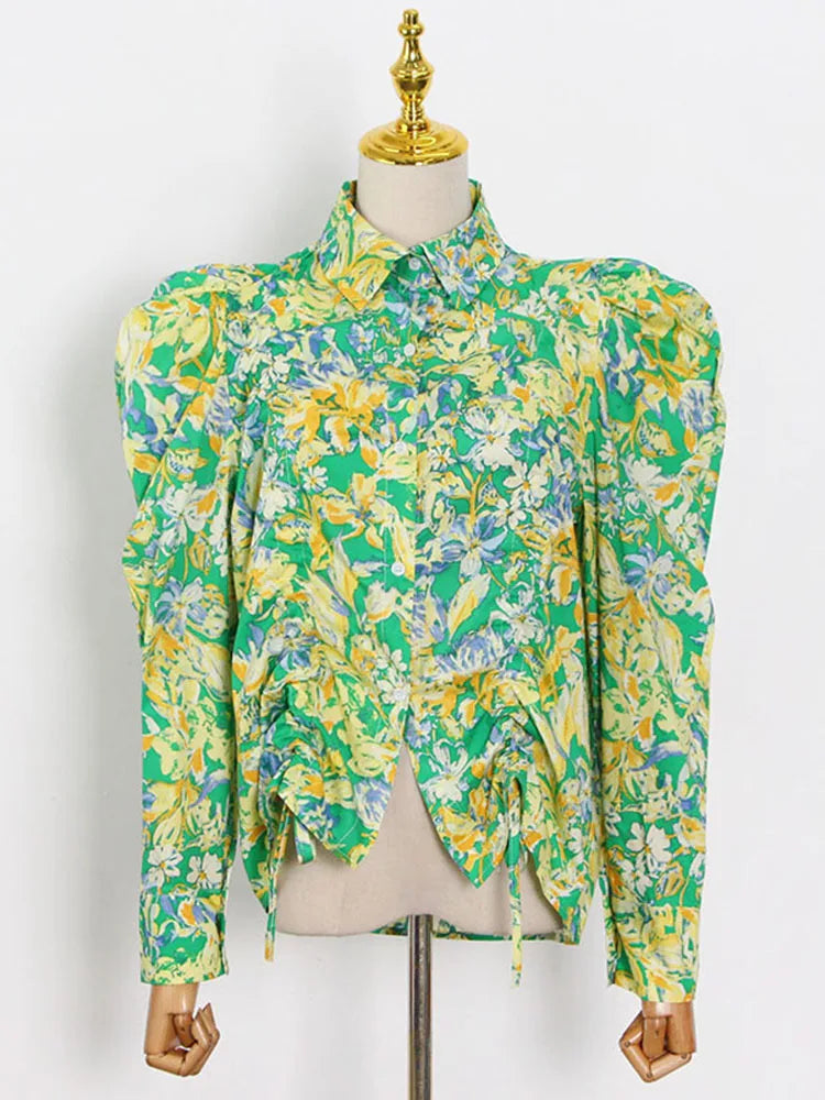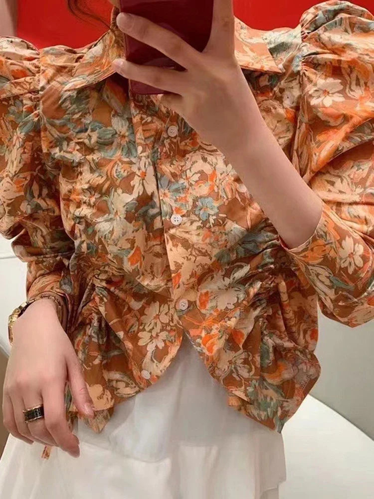 Carolina Spring Floral Puff Sleeve Shirring Blouse