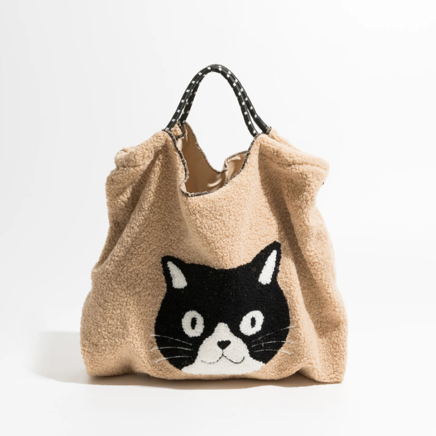 "Carry your essentials in style with our Cat Cartoon Fleece Fur Totes! Made from soft fleece fur. these totes feature adorable cat cartoons. adding a playful touch to your outfit. Lightweight and spacious. this tote is perfect for a day out or for storing your belongings. Purr-fect for cat lovers!" Meow~
