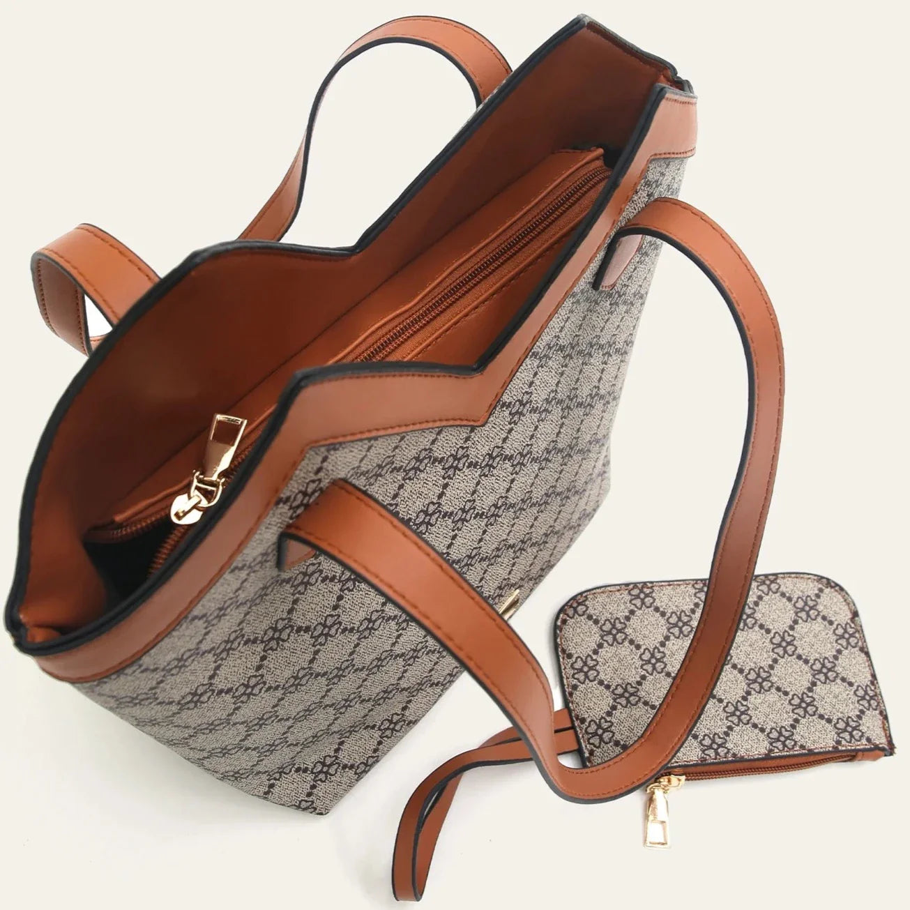 Get ready to make a statement with our Cera Cut Out Monogram Totes! These totes feature a unique cut-out top and monogram design. adding a touch of personalization to your bag collection. The perfect combination of style and function. these totes are roomy enough to carry all your essentials while being a stylish addition to any outfit. Stand out from the crowd with our Cera Cut Out Monogram Totes!