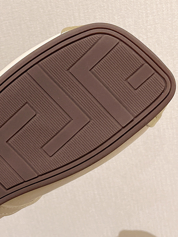Contrast Color Shallow Cut Split-Joint Square-Toe Slippers&Mules Mary Janes Flats