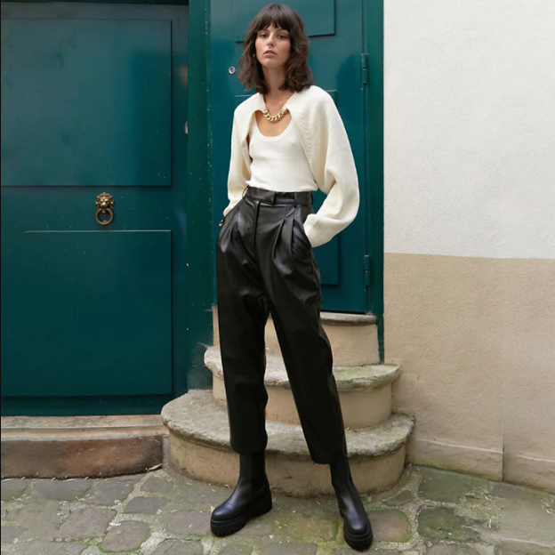 Cropped Bolero Knit Sweater with Gold Choker. Cool cropped bolero knit sweater with bell sleeves and smock neckline. Gold chain details. Layer over tank or bra tops for both trendy and elegant looks.