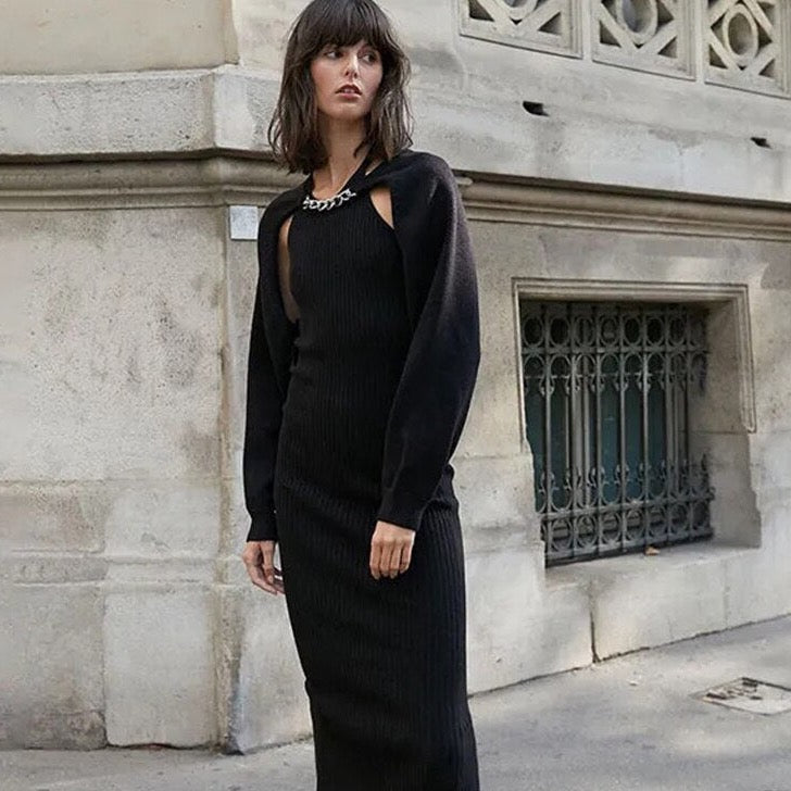 Cropped Bolero Knit Sweater with Gold Choker
