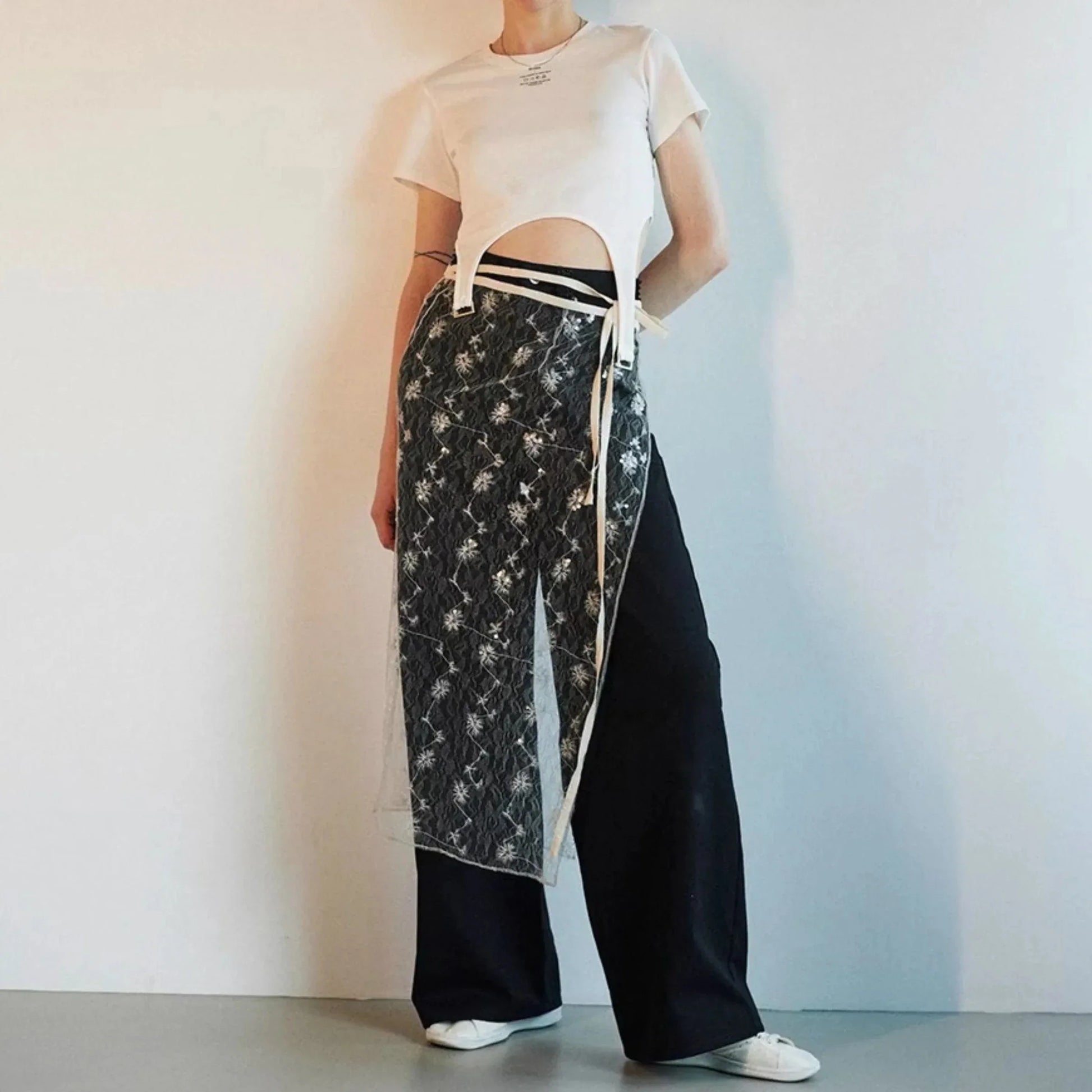 Daria Lace Mesh Wrap Apron Skirt
