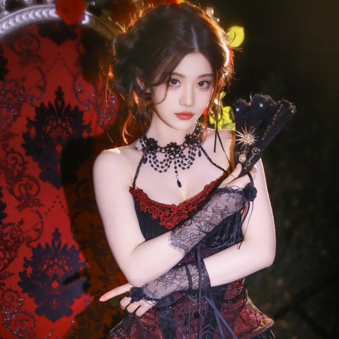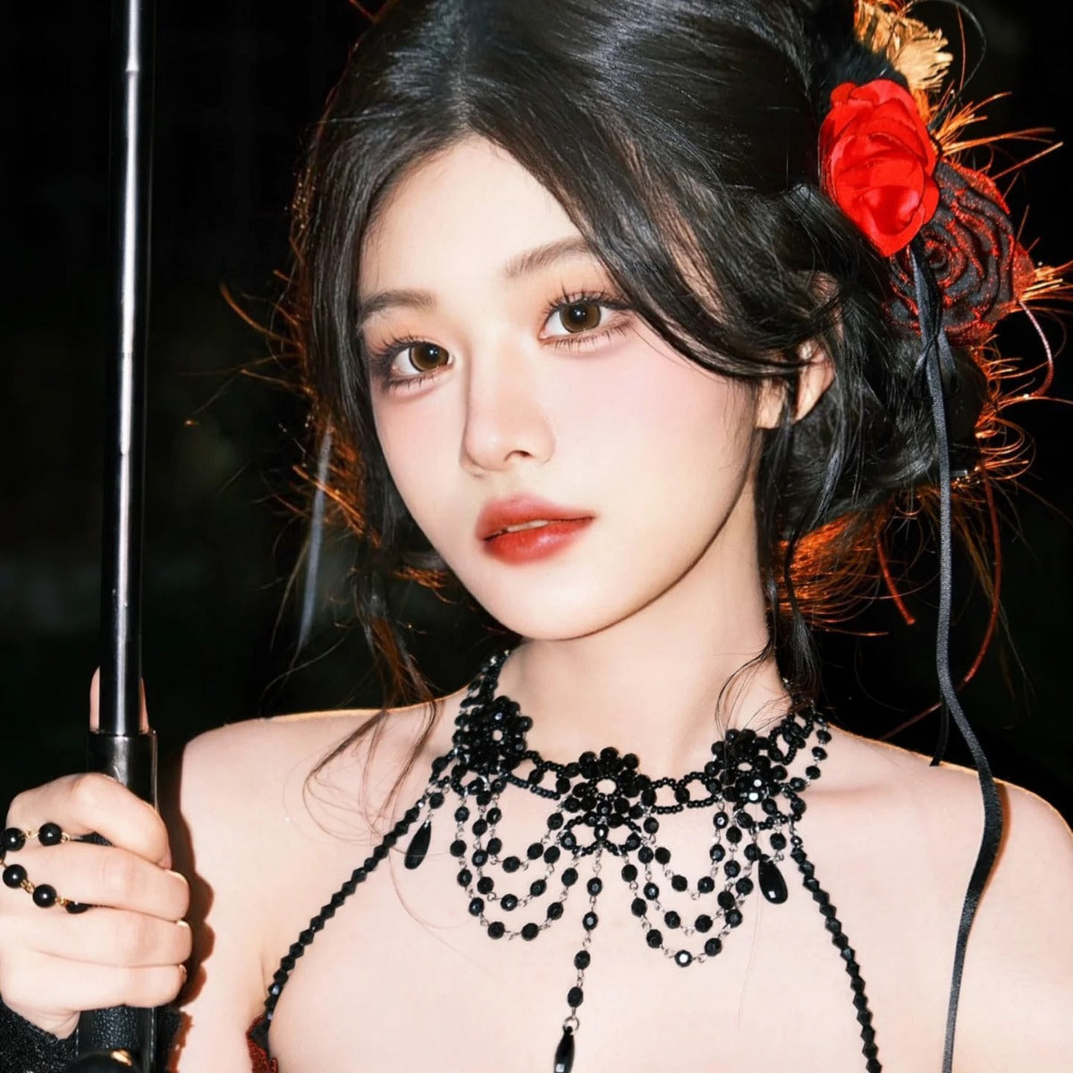 Dark Gothic Black Bead Tassel Palace Luxury Necklace