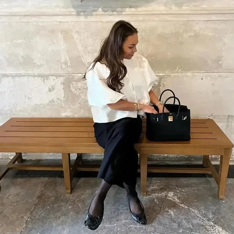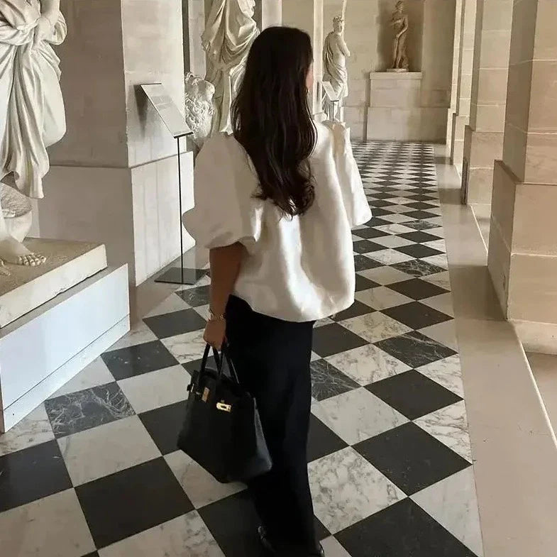 Deborah Satin Puff Sleeve Babydoll Blouses