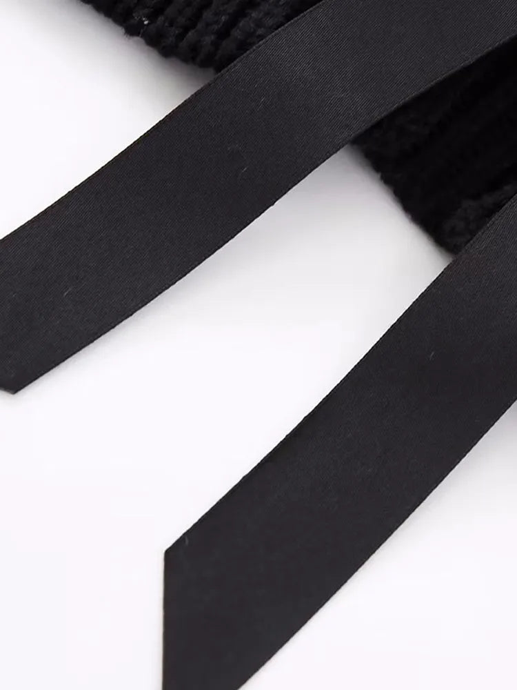Elegant Bow Pearl Long Sleeve V Neck Loose Female Spring Fashion Black Soft Cardigan