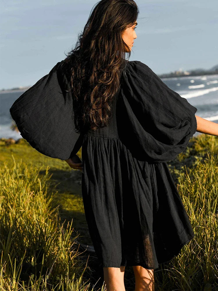 Elegant V-Neck Lace-Up Summer Casual Pleated Boho Dress