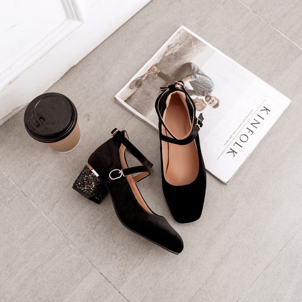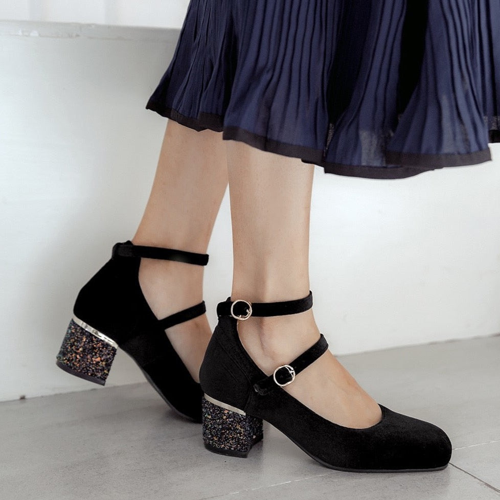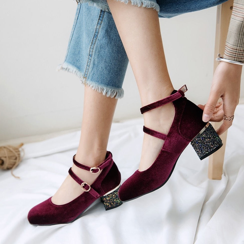 Elin Sequined Heel Mary Jane Velvet Pump - 3 Colors.