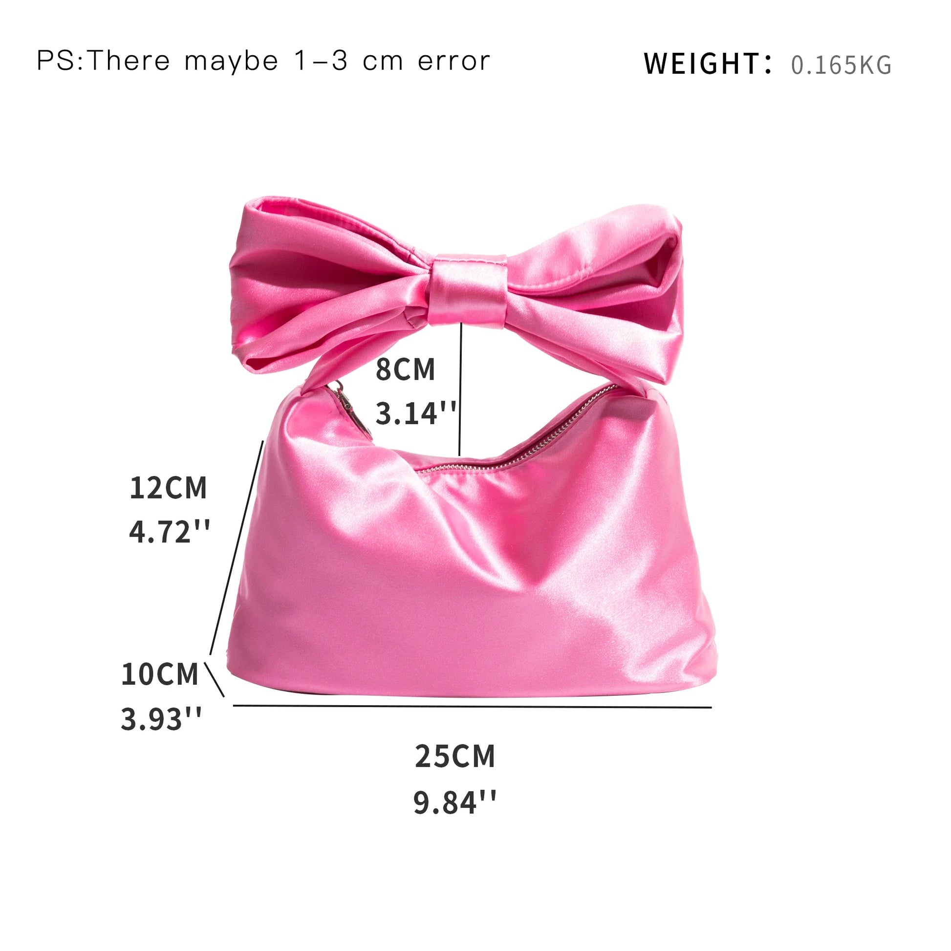 Get ready to be the center of attention with the Elyra Bow Handle Satin Clutch Bag! Featuring a pretty bow handle design this bag is both stylish and playful. Made from luxurious satin. it adds a touch of elegance to any outfit. Perfect for any special occasion. this bag will surely make a statement!