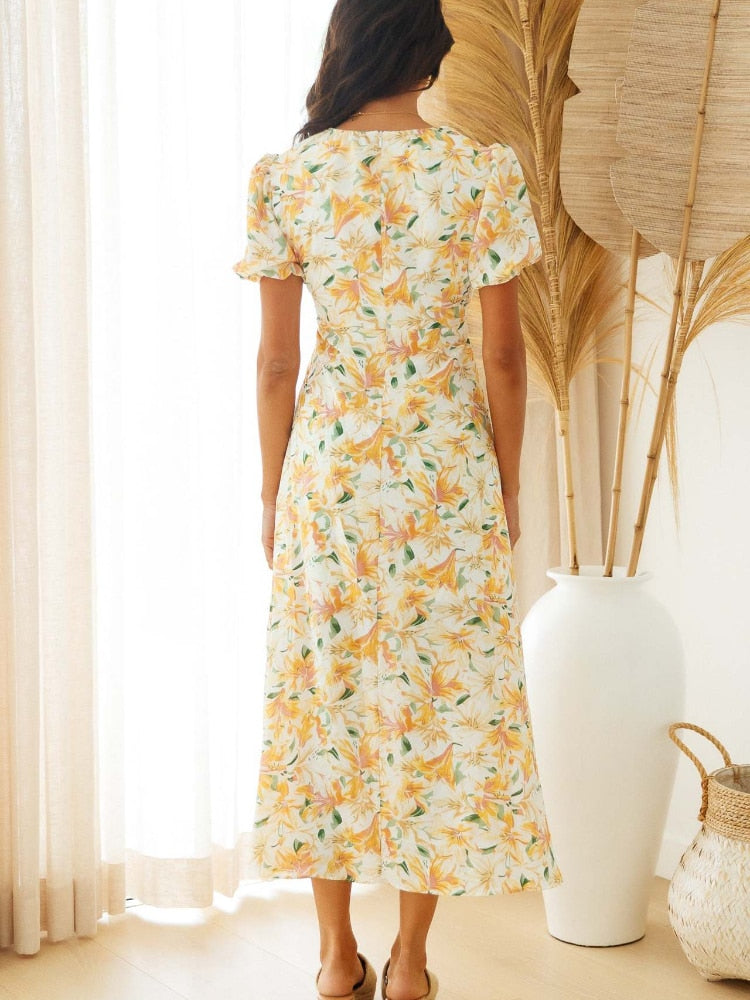 Look like a sweetheart goddess in our Esme Lily Prints Mid Cut Maxi Dress! The vibrant lily print with cap sleeves and mid-cut features are sure to make you an instant pretty fashionista! Get ready to wow 'em!