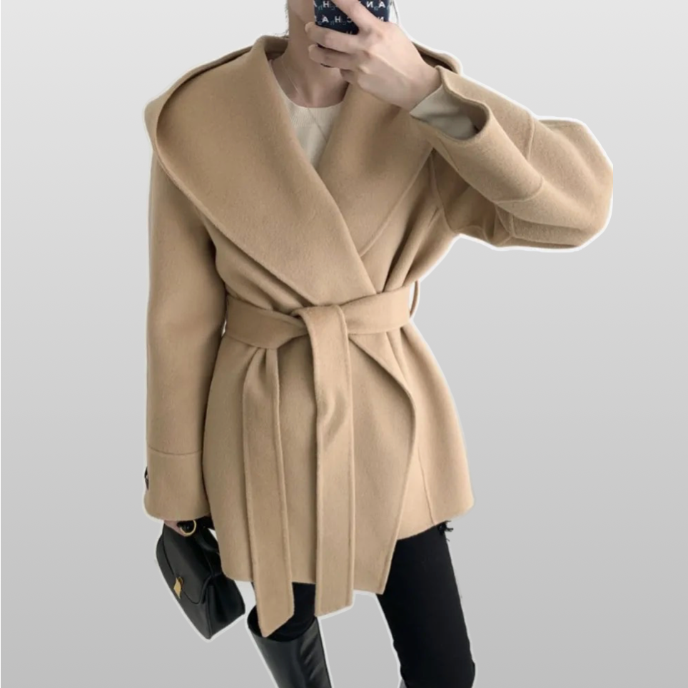 A versatile and stylish addition to your winter wardrobe. the Ewah Faux Wool Belted Hoodie Half Coat is perfect for a chilly day. Its faux wool material provides extra warmth. while its belted design allows for a more customizable fit. Look and feel great all season long!