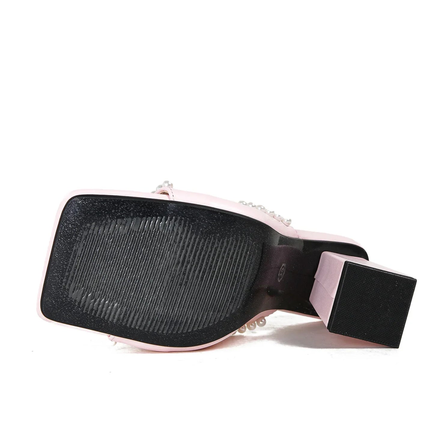Indulge in luxe look with our Farrah Pearl Beads Trim Mule Sandals. Featuring elegant pearl bead trim. these simply beautiful pearly embellished mules will elevate any outfit to a new level of sophistication. Experience the ultimate combination of comfort and sophistication with our Farrah mule sandals. designed for your next special event.