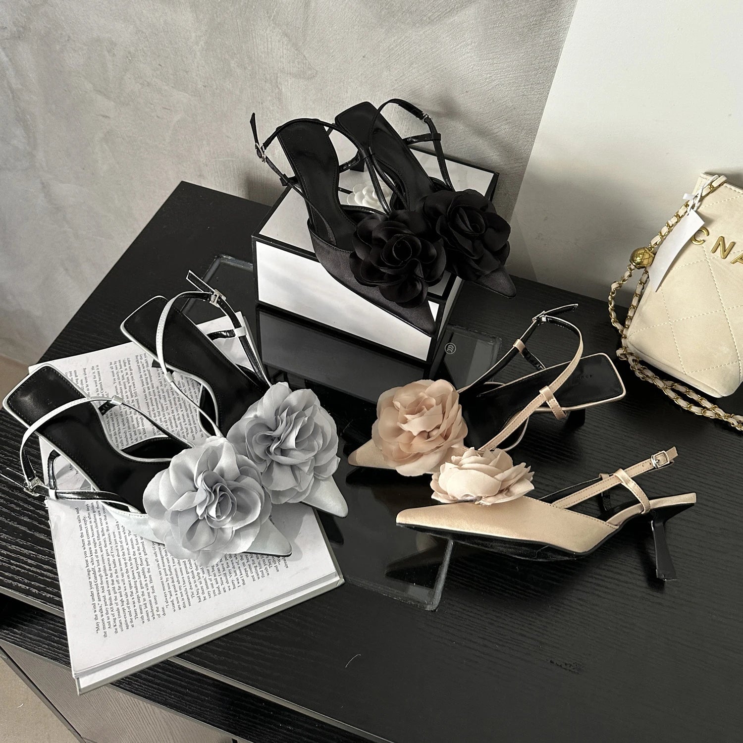 Fashion Buckle Strap Pointed Toe Thin Wedding Designer Dress Mule Ladies Shoes Low Heel Pumps