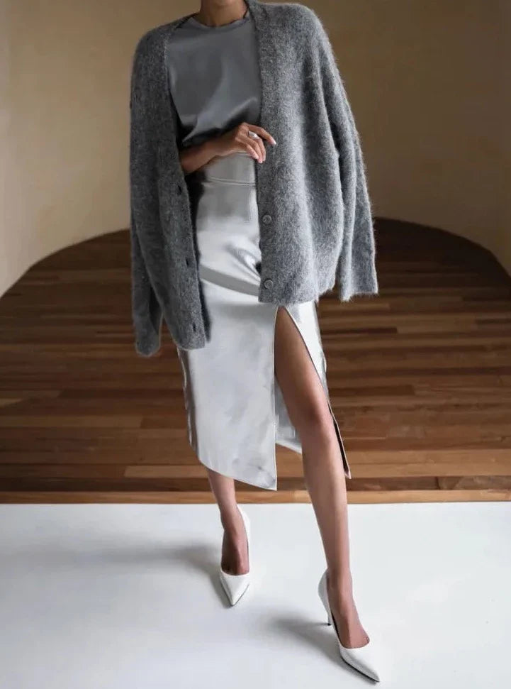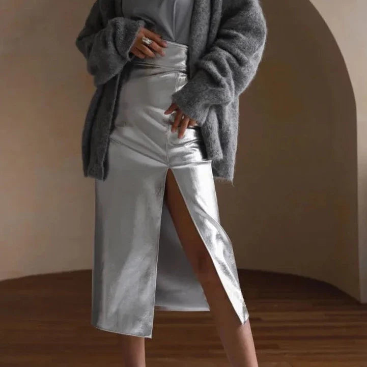 Sashay your way to style in this chic and sassy faux leather pencil skirt. Show off your curves with the slit front design. and get ready to turn heads with your killer fashion sense. Make an entrance like no other in this must-have fashion piece!