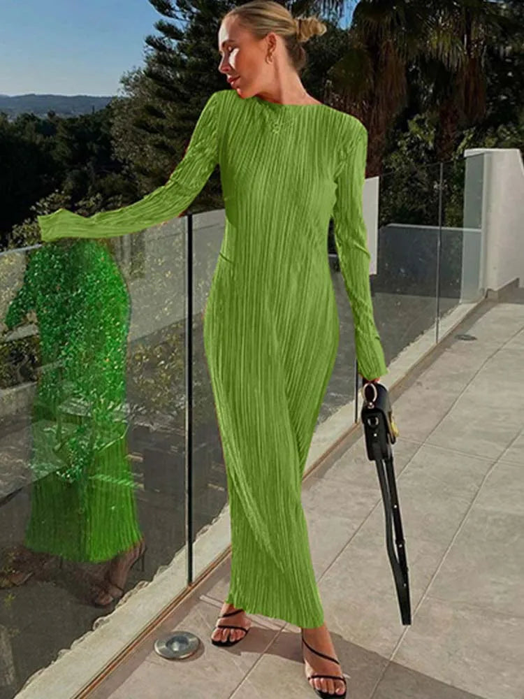 Flare Sleeve O-neck Bodycon Midi Dress
