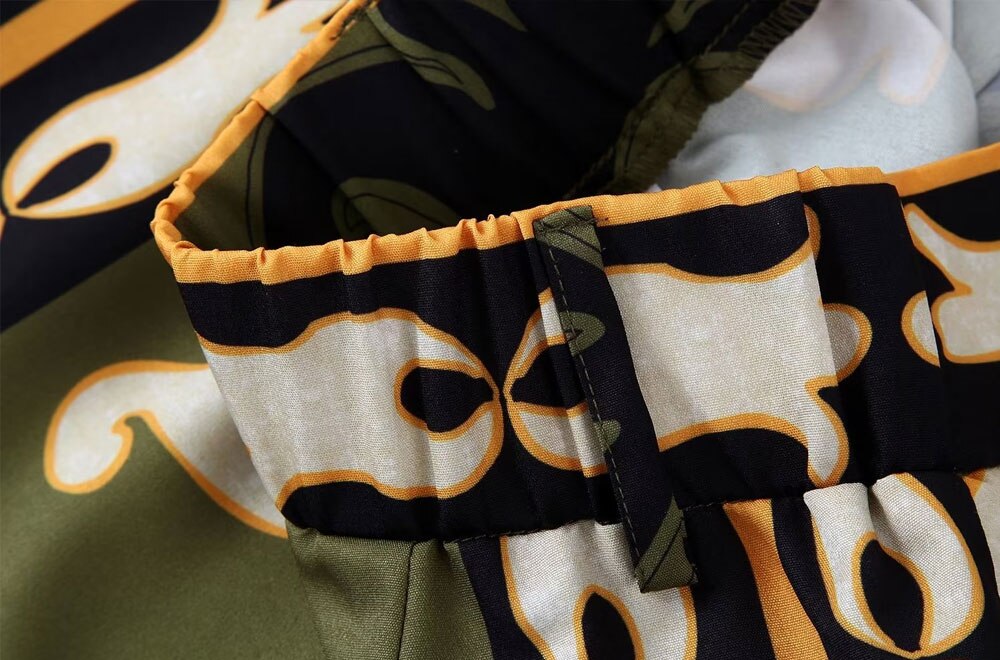 Fleur-de-lis Prints Tunic Top / Wide Leg Pants