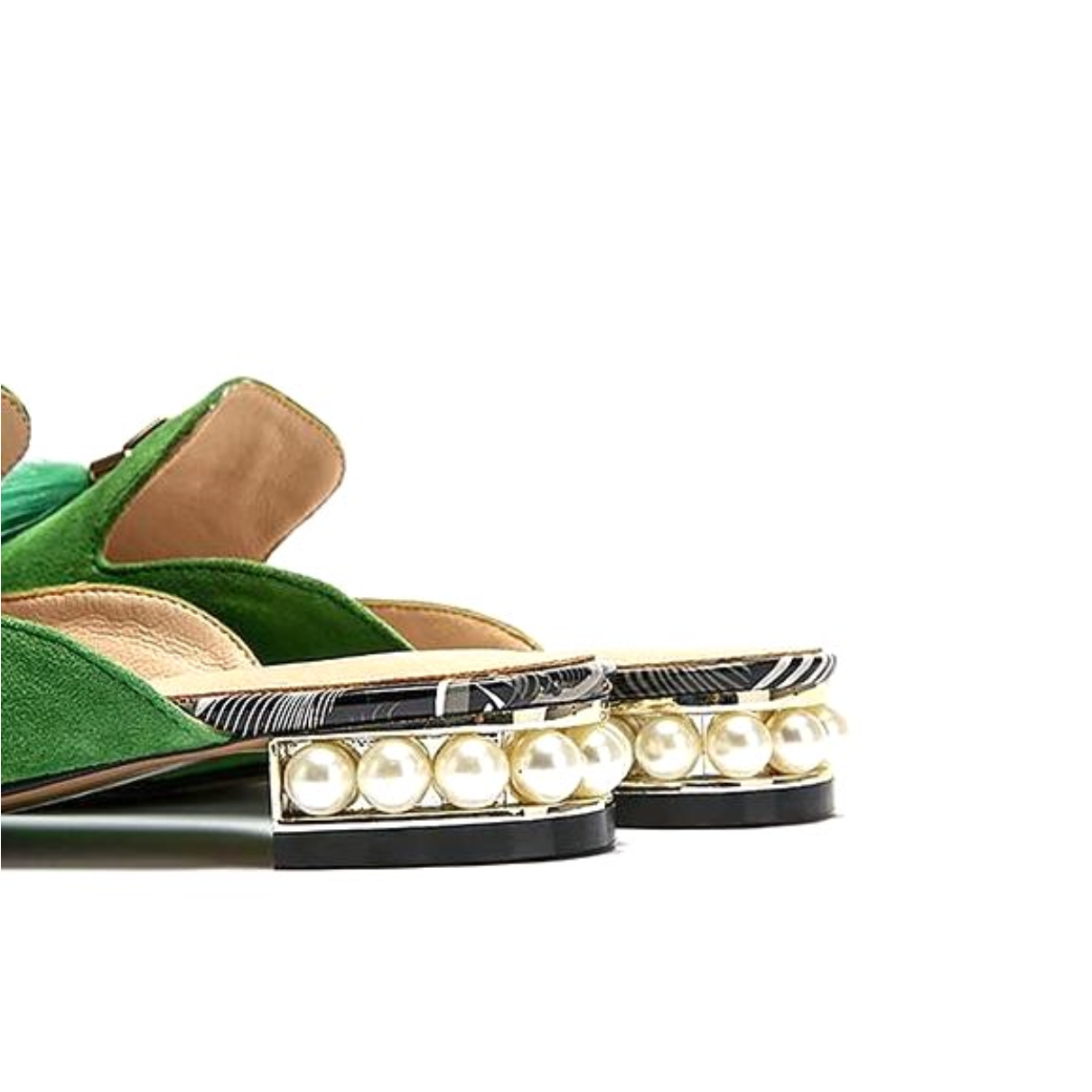 Indulge in luxury with these Fur Tassel Suede Mules. Handcrafted with soft suede and adorned with fluffy tassels. these mules also feature a dazzling pearl-embellished heel. Made from genuine leather and suede. this is a must-have addition to your shoe collection. No Shoe Box.
