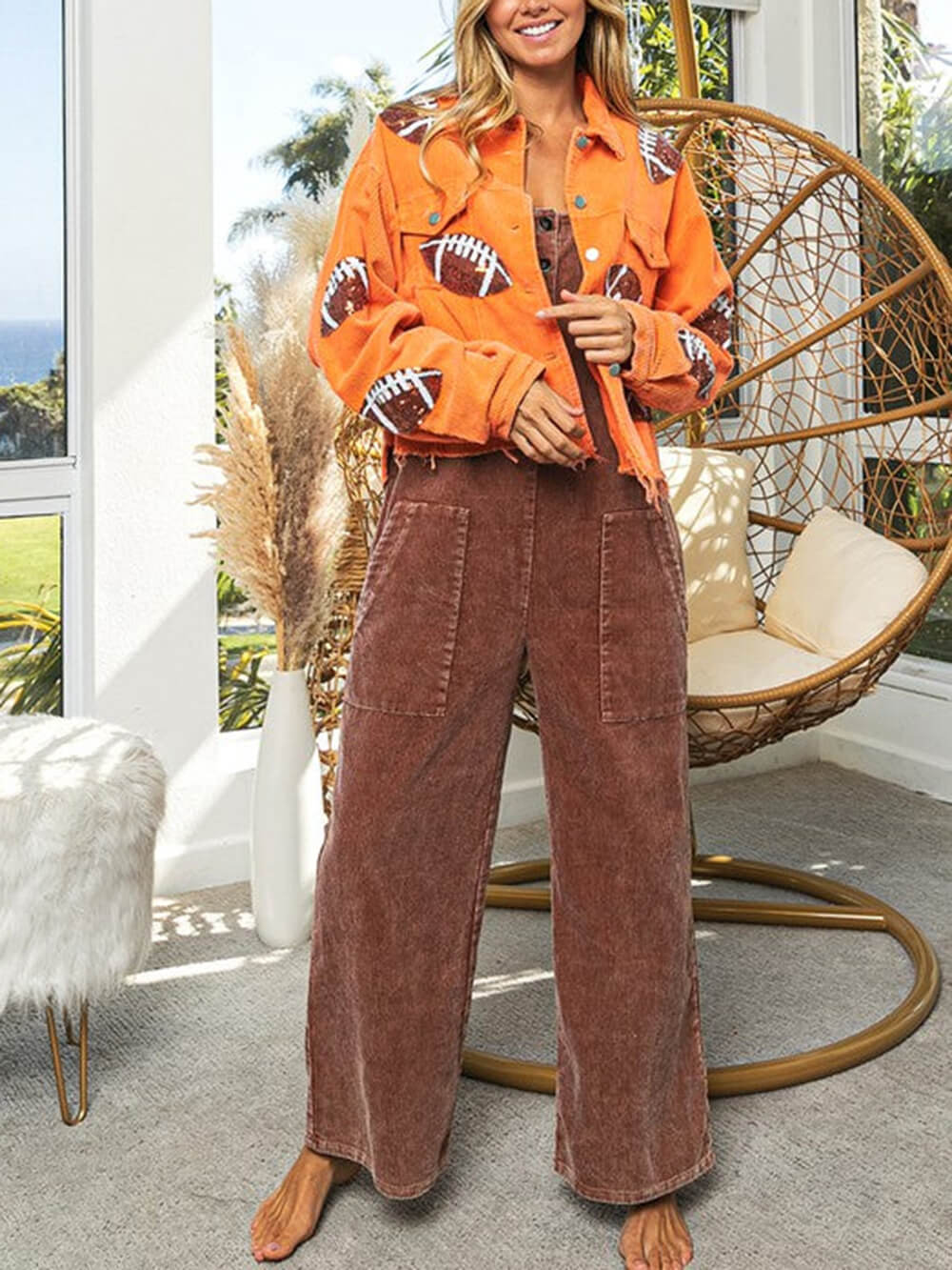 The jacket features a comfortable fit. ensuring both style and ease of movement. Its versatility makes it suitable for a range of occasions. from casual gatherings to more sophisticated events. With the Game Day Rugby Sequined Single-Breasted Jacket. you'll effortlessly make a fashion statement that's uniquely you.