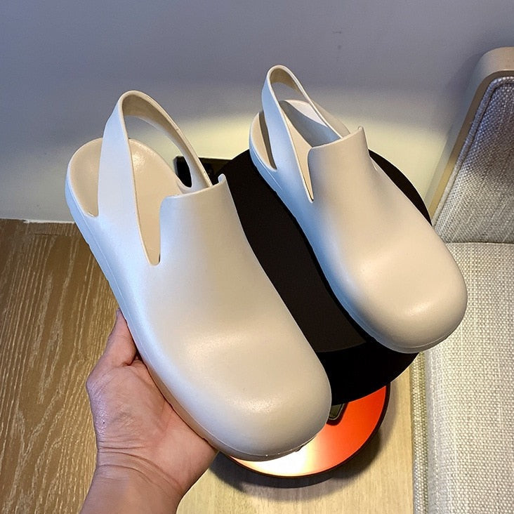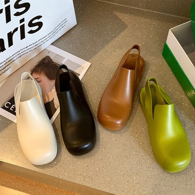 Geneva EVA Seamless Jelly Clog Sandals - 5 Colors. Cool popular EVA clogs in minimalist and modernized look. Seamless smooth single cut body in slingback style. Weather Proof and great for between seasons. These clogs stand at the borderline of practicality and styling versatility.