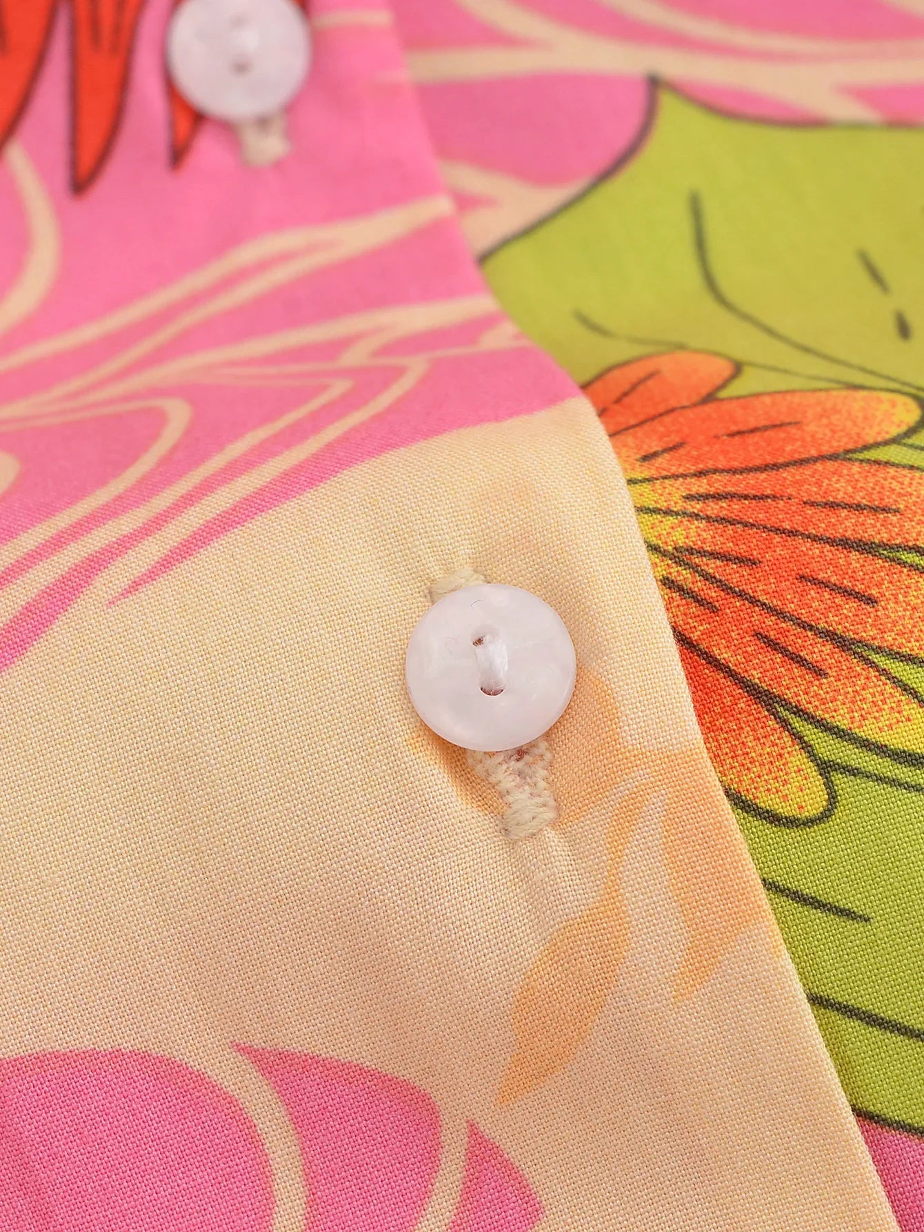 Experience a tropical oasis with our Holly Pink Floral Shirts! Featuring a fun and stylish design. these shirts will add a burst of color to your wardrobe and put you in vacation mode no matter where you are. Light and breezy. they're a must-have for beach days and summer nights.