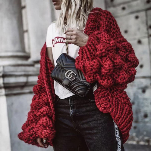 Jennifer Chunky Hand Knit Cardigan Sweater. Really cool and lovely knit sweater. Wear off the shoulder. Oversized bell sleeves are fun and trendy. Hand Knitted. It's the perfect way to stay cozy yet super chic. Find your new winter wardrobe staple - you'll be ready for anything from coffee with friends to a night out on the town.