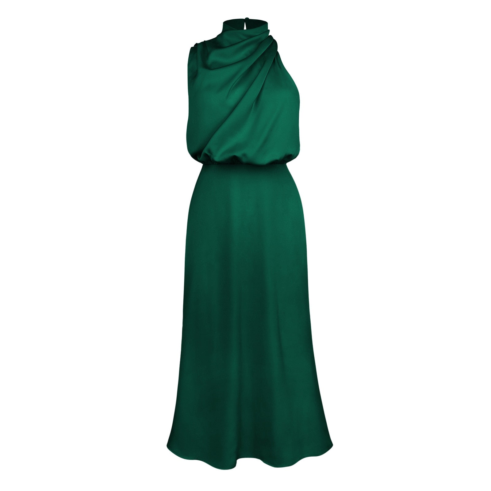Make a sophisticated statement in the Katie Satin One Shoulder Halter Dress. Crafted from luxe look satin fabric. this dress features a modern one shoulder neckline and a flattering halter fit. Perfect for any upscale event. it will ensure you look and feel your best.