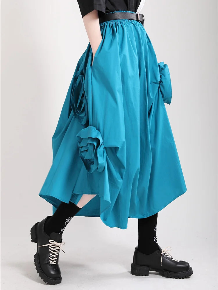 Introducing the Katrina Rose Applique Blue Midi Skirts! Perfect for adding a touch of whimsy to any outfit. these skirts feature Rose applique detailing and a casual yet flattering flare silhouette at midi length. Achieve effortless style and show off your unique personality with these fun and playful skirts.