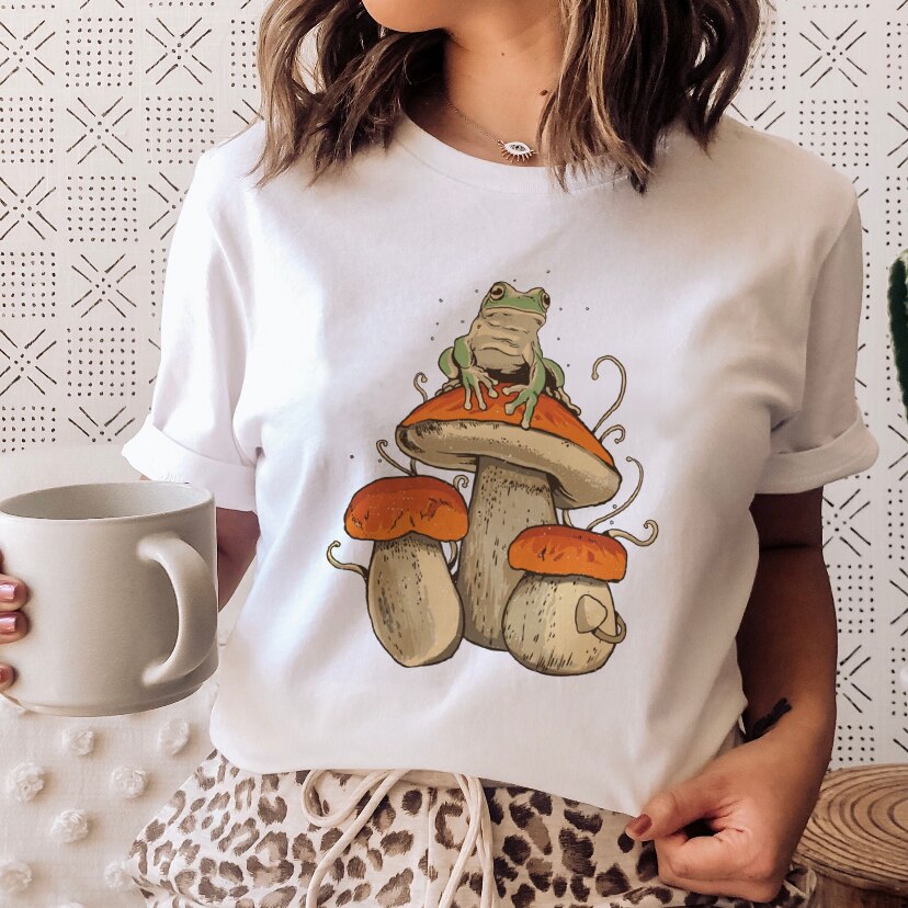 Ladies Mushroon Frog Tshirt Fashion Cartoon Animal Lady Print Tee