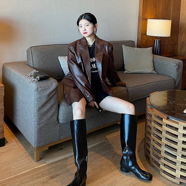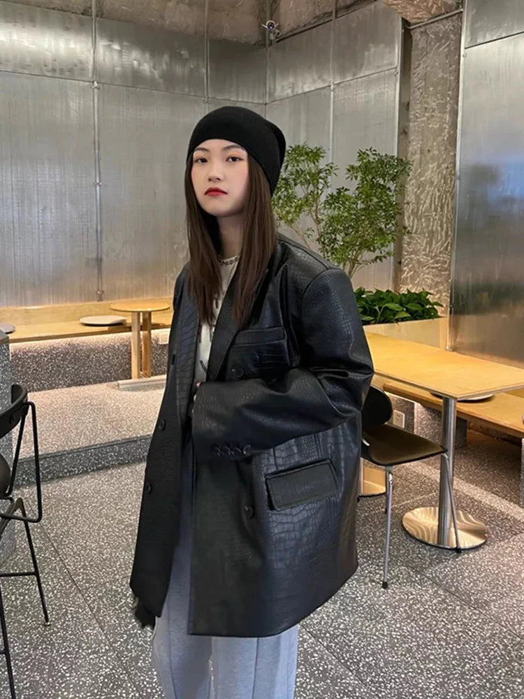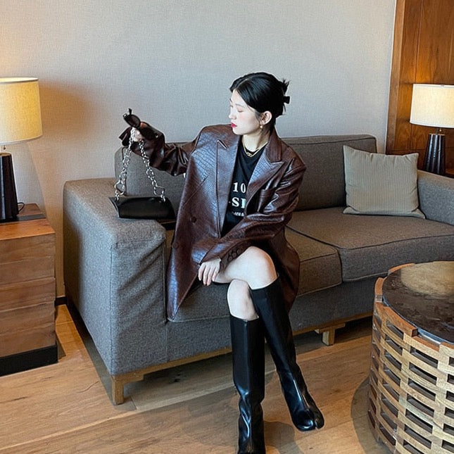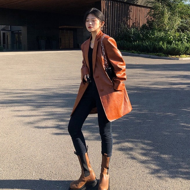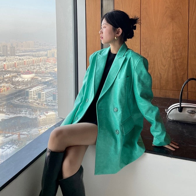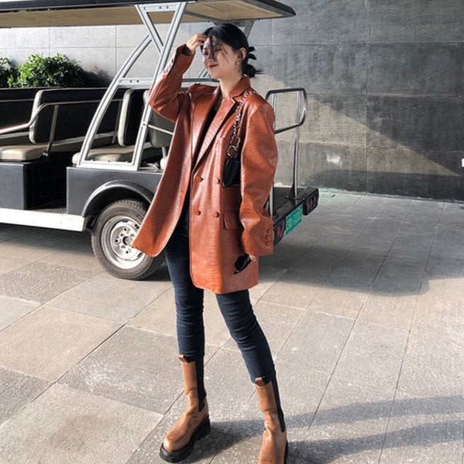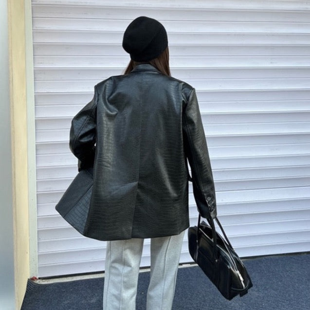 Laura Crocodile Pattern Faux Leather Blazer - 5 Colors