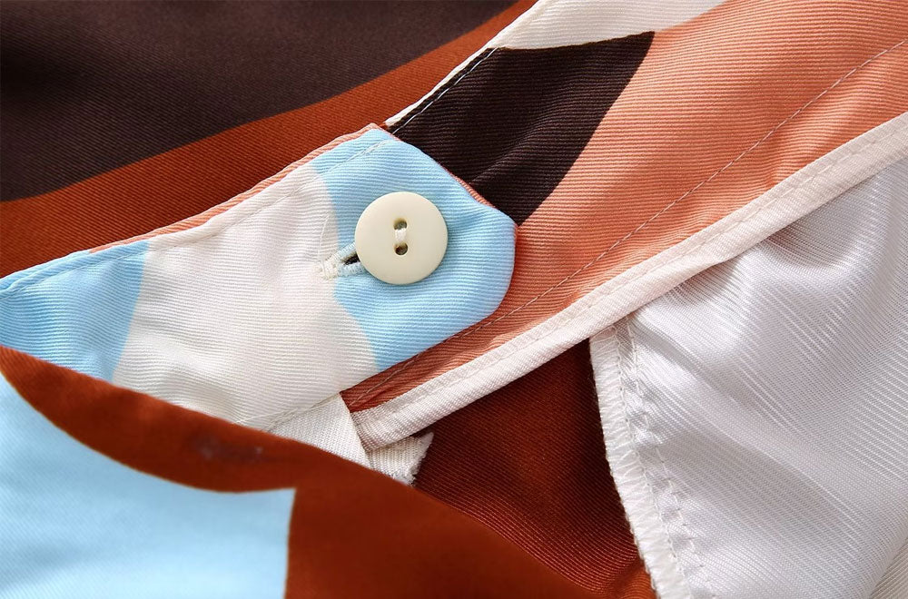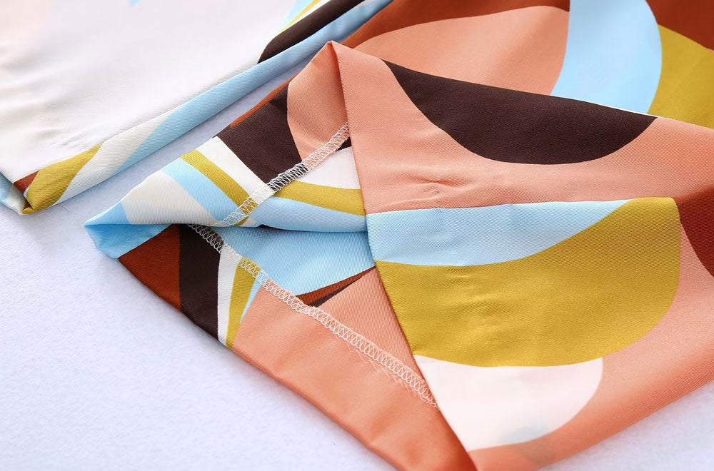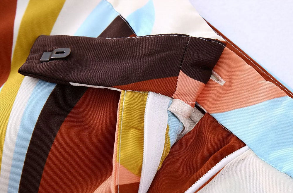 Leaf Abstract Prints Wide-Leg Pants. Colorful scarf prints wide-leg pants to brighten your day. Vacation or casually lounging these pants look great.
