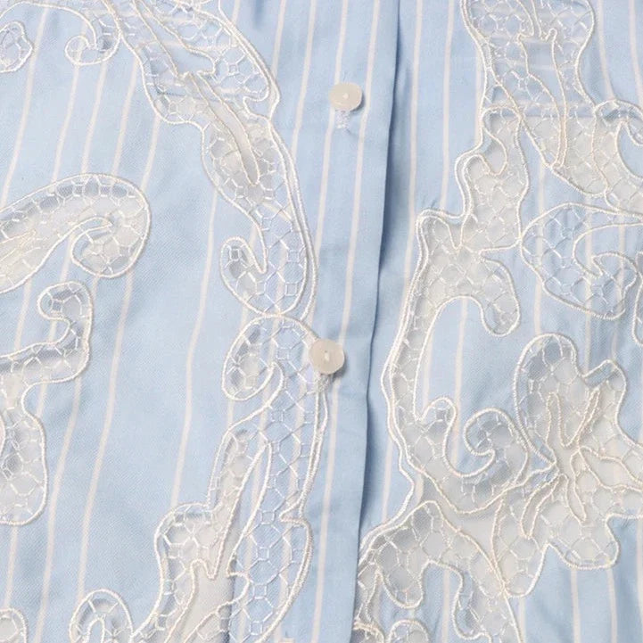 Spice up your wardrobe with the Leilani Lace Patchwork Cropped Shirt. Featuring a unique lace patchwork design. this shirt adds a touch of playfulness to any outfit. Show off your quirky side with this western-inspired crop top.