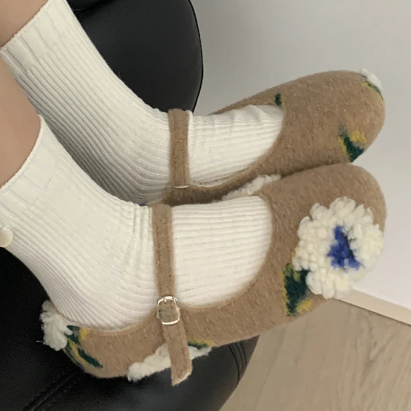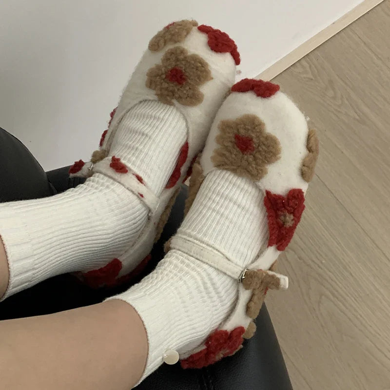 Lorie Vintage Floral Faux Fur Ballet Flats