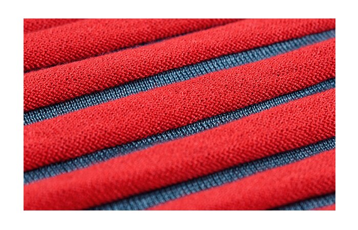 Luena Color Contrast Pleated Knit Skirt. Stylish blue and red stripe look pleated midi/maxi knit skirt. Simply colorful to bring style upgrade to any outfit.