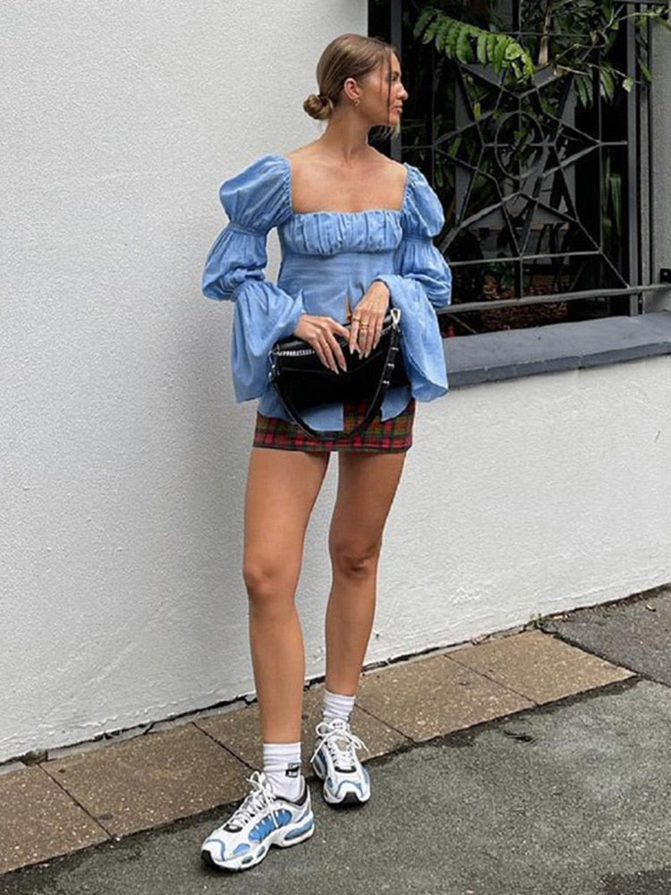 Maggie Square Neck Blouse with Cascading Puff Sleeves - 3 Colors. Romantic and street style hot exeaggerate puff sleeve blouse top with square neckline. cascading lantern sleeves and a front split cut. Instant drama princess without bad dramas.