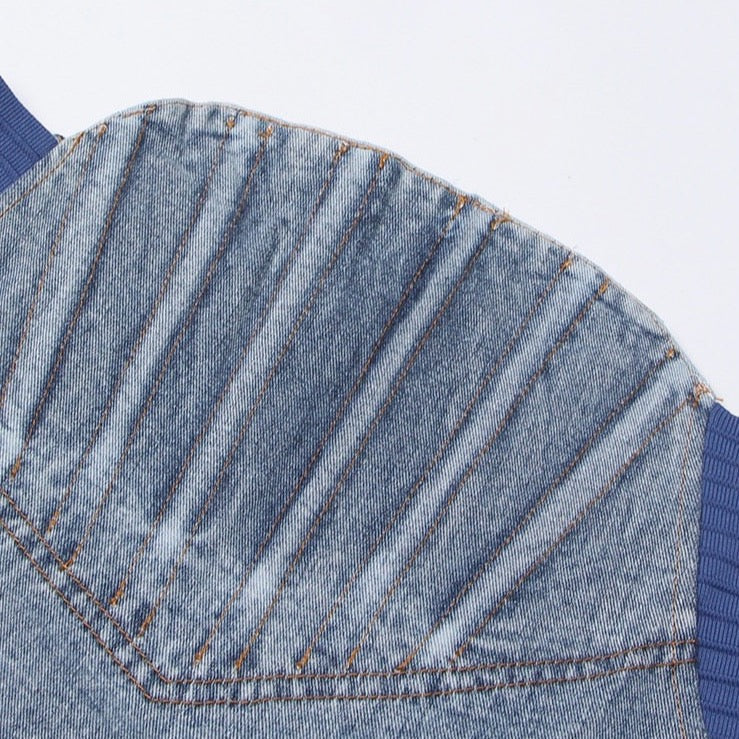 Makena Scallop Waist Denim Skirt. Unique look denim midi skirt with blue elastic side panel and beautiful scallop waist front. Are you ready to be a mermaid? Elastic side. zipper closure.
