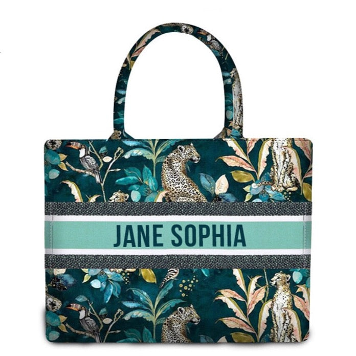Marcella Your Name Monogram Canvas Totes - 20 Styles. Gorgeous prints canvas fabric tote customized with your name. monogram initials or any name that you love. Full of retro feel pattern prints - toile. floral or leopard. bring it on by customizing it with your name. monogram initials. any name. brand* or any text you like. Choose your pattern. choose your font. Certainly great as gifts.