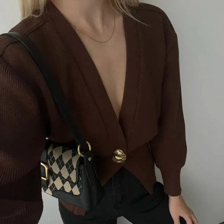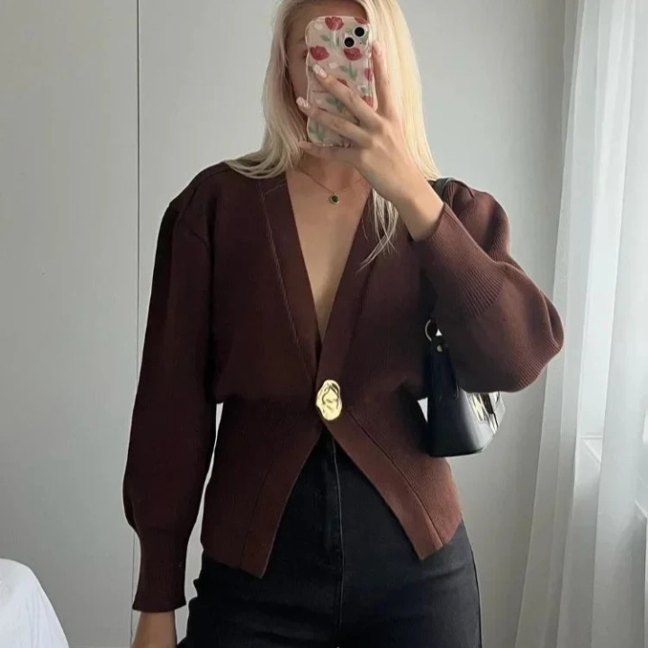 Introducing the Marcia Puff Sleeve Cardigan - the perfect blend of style and comfort. Featuring deep V-neck. puffed sleeves with golden button accent for a touch of playfulness and elegance. this cardigan is perfect for any occasion. Great for layering or stand alone. Grab yours now!