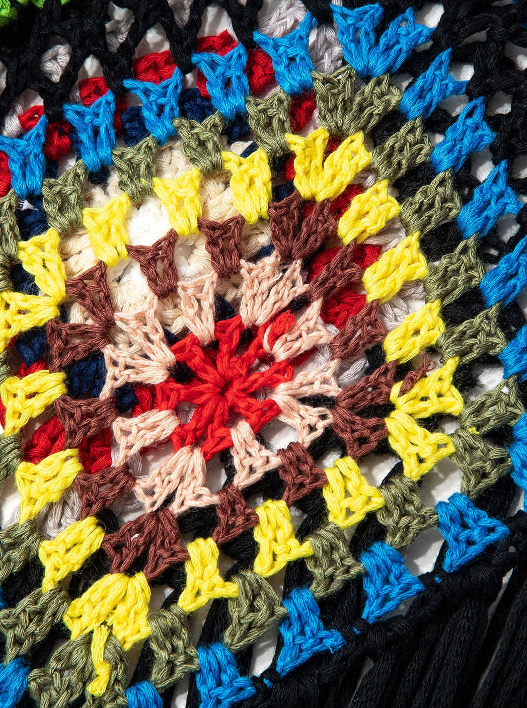 Rainbow Square Pattern Fringe Crochet Knit Cami Top